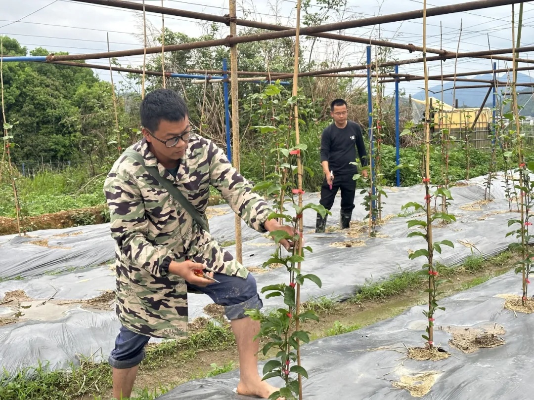 近日,在新泉镇蜂宝家庭农场的百香果基地,工人们正忙着搭架、整枝、一派忙碌景象。蜂宝家庭农场农场主董兴煌说:“现在正是春季...
