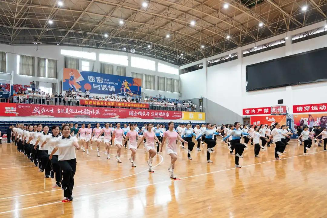 4月18日,连城县举办第七届职工趣味运动会。来自县直各单位、在莲国有企业、部分乡(镇)的54支代表队,共1197名职工欢聚一堂、同场竞技。县人大常委会副主任杨晓春出席开幕式。